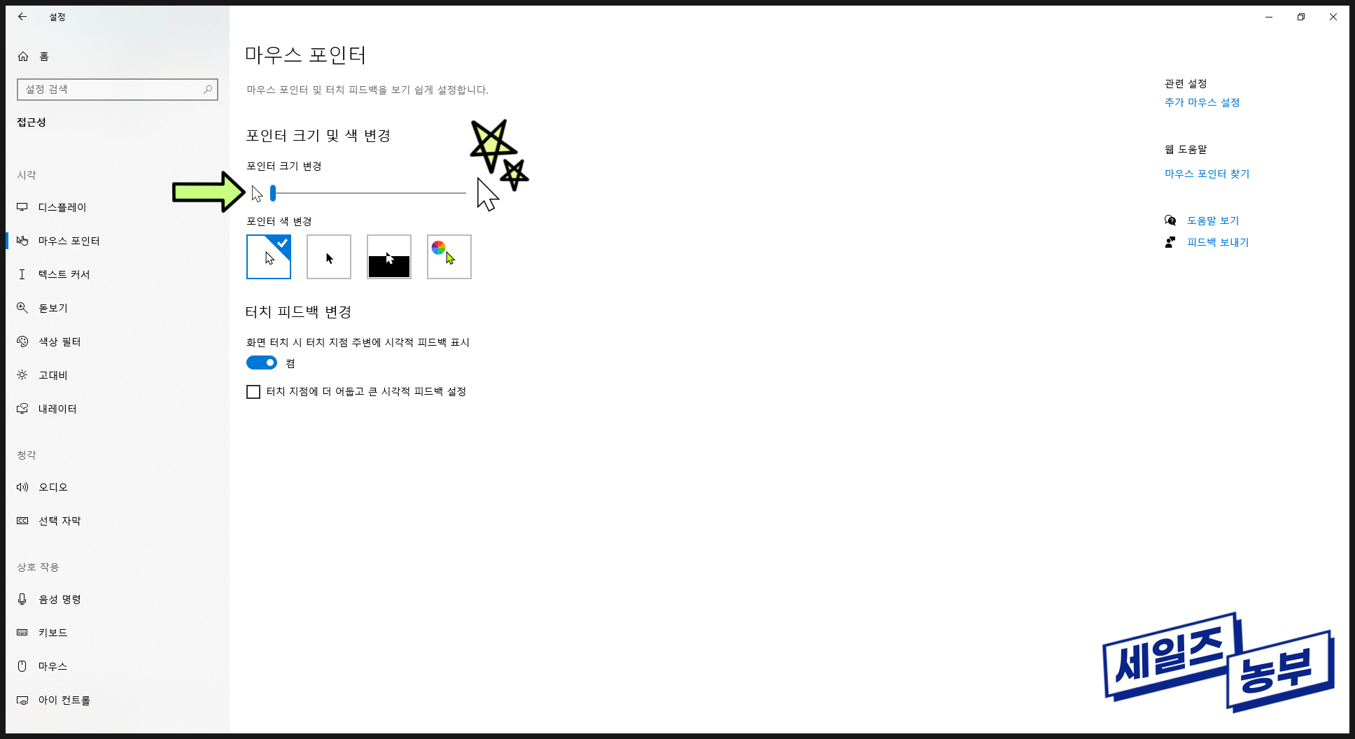 2. 마우스 커서 크기 및 색상 조절 (접근성 설정)