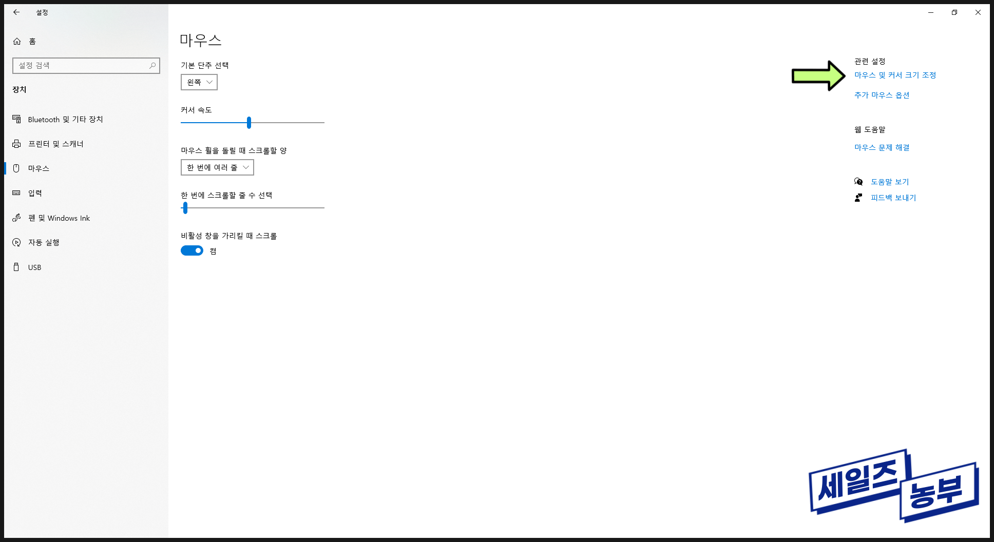 고해상도 모니터를 사용하거나 시각적 편의성을 높이고 싶다면 커서의 크기와 색상을 조절하는 것이 효과적입니다.